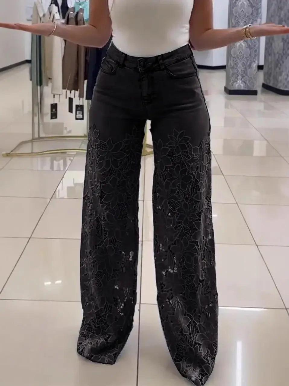 Floral Crochet Lace Cut-Out Jeans Patchwork Hollow Jeans